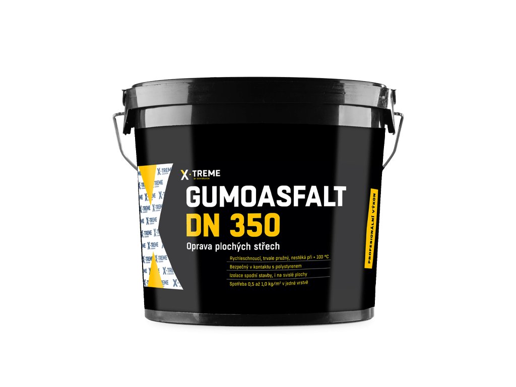 Gumoasfalt DN 350 je disperze asfaltů modifikovaných syntetickým kaučukem k použití na suché a mírně vlhké podklady. Díky tixotropním vlastnostem je možno nanášet Gumoasfalt na podklad s libovolným sklonem. Nátěr ze svislého povrchu nestéká ani při vysoké teplotě +100 °C, a naopak při nízkých teplotách si zachovává elasticitu. Je odolný vůči působení atmosférických vlivů, slabým kyselinám a zásadám a působení agresivních látek obsažených v zemi. Gumoasfalt DN 350 lze použít i v bezprostředním kontaktu s polystyrenem, nenarušuje jeho strukturu. Spotřeba materiálu na jednu vrstvu je 0,5-1 kg/m2.