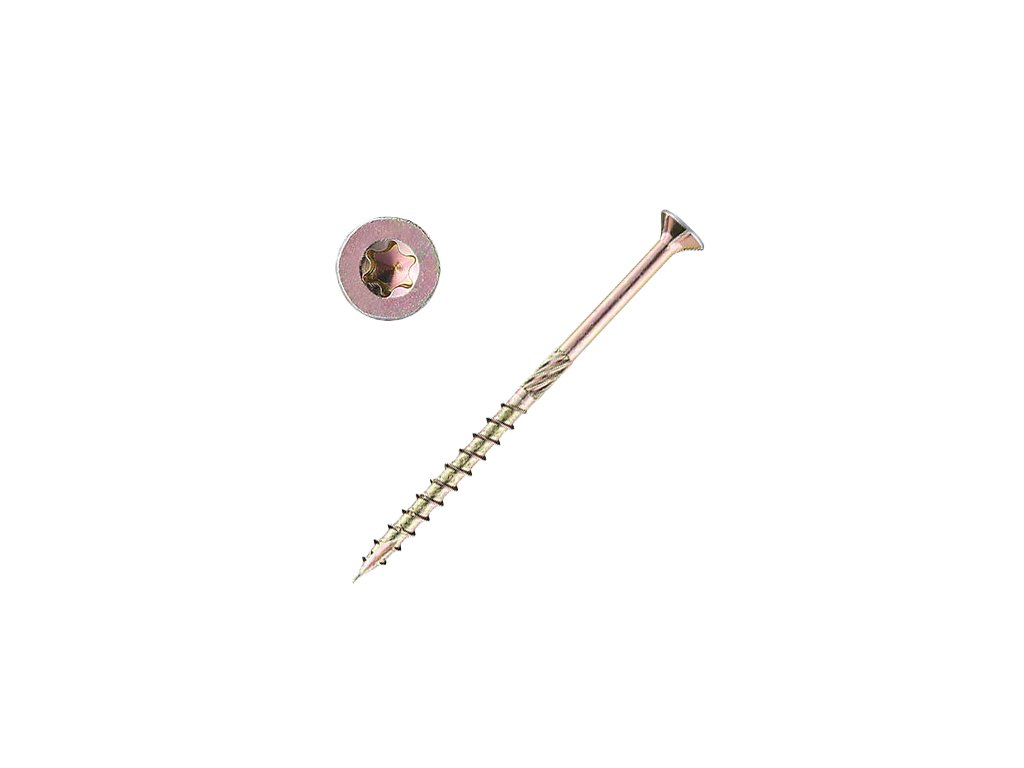 Konstrukční vrut do dřeva, který je určen pro mechanické spojování dřevěných nosných prvků.