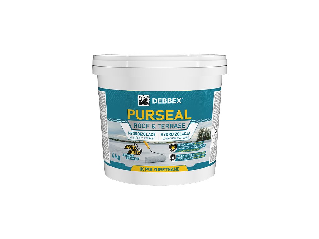Hydroizolace na střechy a terasy PURSEAL je hydroizolační nátěr na vodní bázi, určený pro střechy, asfaltové pásy, bitumenové nátěry, terasy s rohožemi, nátěr PU pěny pro její ochranu a kovové povrchy. Má výbornou odolnost proti UV záření a teplotám až do -40 °C s odolností proti mechanickému namáhání.