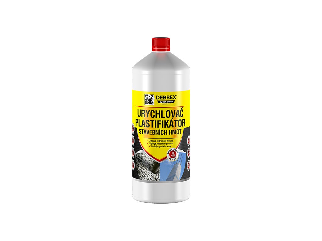 Urychlovač a plastifikátor stavebních hmot 1 l láhev nažloutlá