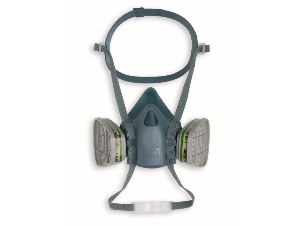 Polomaska 3M 7501. Dobře vyvážená, pohodlná, nenáročná údržba, lícnice z protialergického materiálu, vhodná pro velmi nepříznivá pracovní prostředí, zhotovena z euderimického silikonu, náhlavní pásky umožňují sejmout masku při krátkých přestávkách, aniž by musela být odložena, bajonetový připevňovací systém pro 2 filtry umožňující rychlou a snadnou výměnu, kompatibilní se všemi filtry 3M řady 2000, 5000 a většinou filtrů řady 6000.Vel. S = 7501