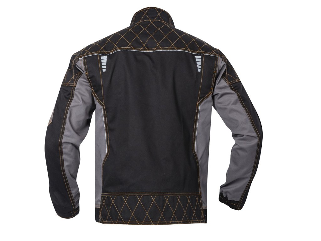 - zajímavé vizuální prvky jako jsou zesílené partie ramen a rukávů a kontrastní prošívání jeansovou nití