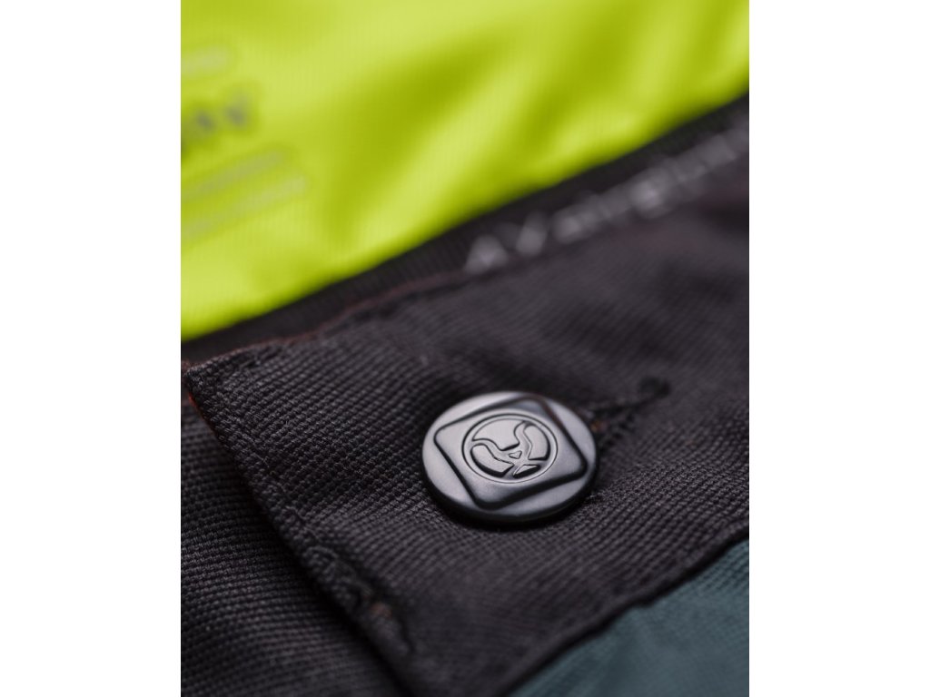 - kalhoty jsou vybaveny D kroužkem na karabinu, 2 hlubokými průhmatovými kapsami zpevněnými materiálem Oxford, 1 přední zipovou kapsou, 1 přední nářaďovou kapsou s širokým poutkem