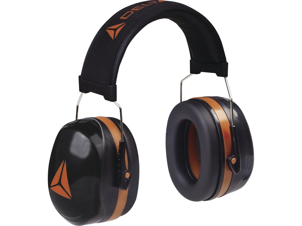 Chránič sluchu s mušlemi z ABS. Mušle plněné syntetickou pěnou. Kovový oblouk: vnější část textil, vnitřní EVA, PVC. Nastavitelná výška. Vysoká ochrana.