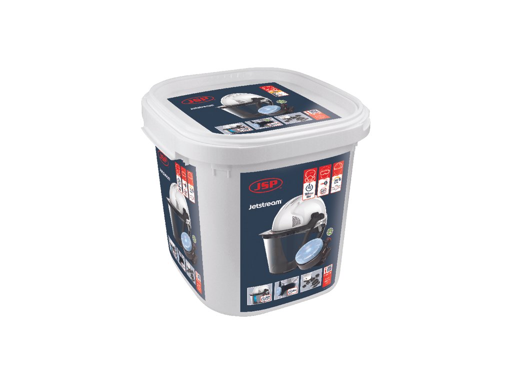JSP Jetstream® je dobíjecí respirátor připevněný na opasku s velkokapacitním jednorázovým filtrem, který dodává čistý vzduch přes vysoce flexibilní vyztuženou hadici k různým náhlavním soupravám pro různé aplikace. Kompletní jednotka a pás váží pouhých 765 g. (Hmotnost závisí na variantách modelu). Vysoký výkon jednotky - 180 litrů vzduchu za minutu je dodáváno přes filtr Jetstream® přes vysoce flexibilní hadici do požadované náhlavní jednotky. Jetstream® Constructor Kit (TH2A2P R SL) s vícenásobnou zástrčkou obsahuje: bezpečnostní přilbu EVO®5 s utěsněným polykarbonátovým zorníkem; pružnou hadici; filtry TH2A2P R SL; průtokoměr; nabíjecí baterii; zásuvkový adaptér pro více regionů