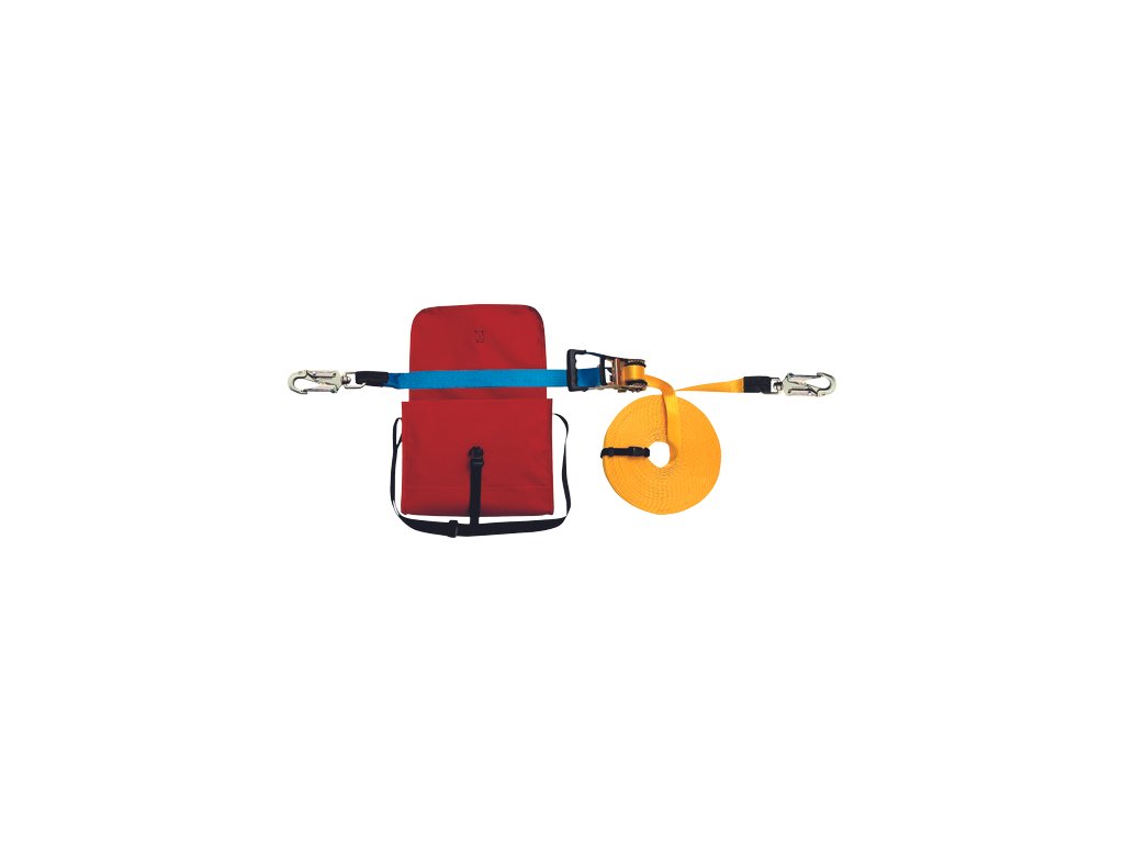 Dočasný horizontalní popruhový systém AE320 – možnost regulace délky a dopnutí systému pomocí račny – současné jištění až tří osob – 10 m, 20 m. Certifikace dle – EN 795 B
