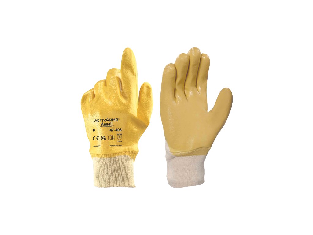 pohodlné a pružné rukavice odolné proti oděru, které výborně odpuzují olej; jsou odolné proti oděru jsou opatřeny nitrilovým povrchem, který zajišťuje vynikající odolnost proti olejům na dlani a hřbetu ruky; mají bavlněnou podšívku, která poskytuje uživatelům optimální pohodlí a pružnost a vynikající obratnost; mají také bezpečnostní manžety a elastické pletené zápěstí, takže spolehlivě a pevně padnou