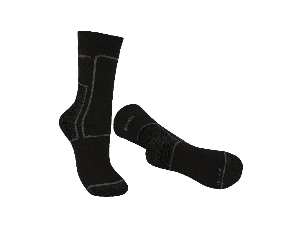 Profesní a trekové zátěžové ponožky s anatomicky tvarovanou a zesílenou konstrukcí chodidla, funkční polypropylenový froté úplet podporující odvod vlhkosti od chodidla. Příjemně elastické a pohodlné na nošení. Velikosti: 36-38, 39-41, 42-44, 45-47, 48-49