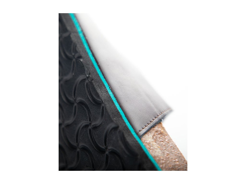 - korkové nazouváky se svrškem z materiálu action leather (štípaná kůže s povrchovou polyuretanovou úpravou)