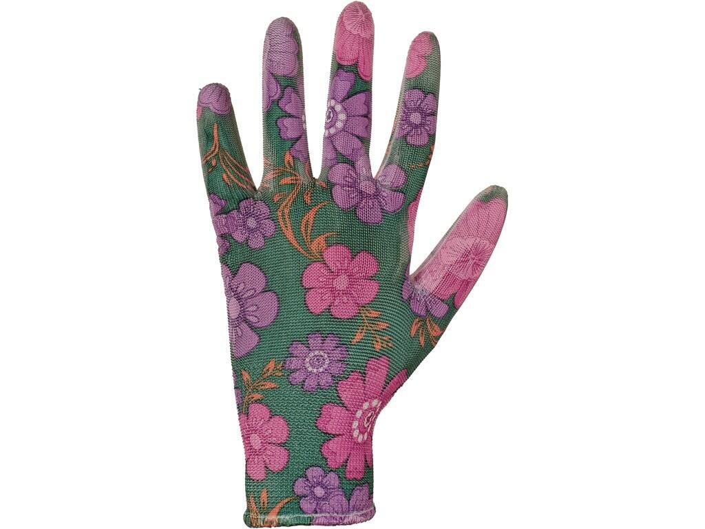 Pletené bezešvé rukavice s potiskem, dlaně a prsty povrstveny polyuretanem, pružná manžeta. Baleny s blistrem. Doporučené aplikace: zahrada, hobby, zemědělství, úkony lehké montáže.