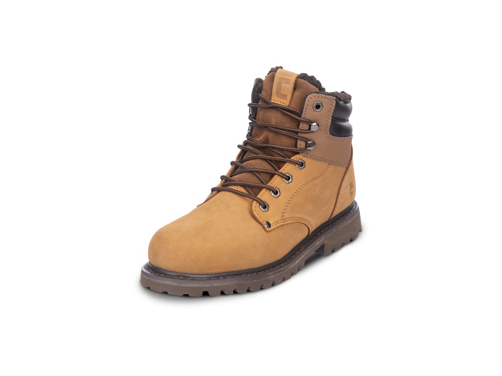 Kotníková termoizolační obuv bez ocelové špičky, antistatická protiskluzová gumová podrážka odolná vůči oleji, absorpce energie v patě, vodotěsný prodyšný svršek z nubukové kůže.
