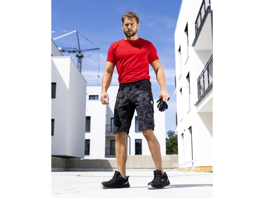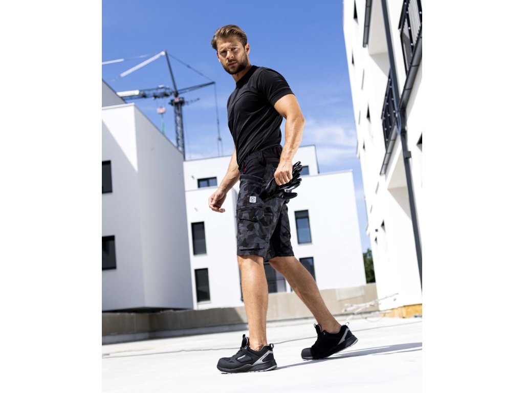 Strečové bavlněné montérkové kraťasy ze speciálního materiálu Amalytton®, který vyniká zvýšenou pevností a hladkým, jemným povrchem. Sníženou gramáž oceníte díky příjemnému pocitu při nošení. V exponovaných partiích je použitý odolný a čtyřsměrně elastický materiál Tabiflex®. Kraťasy mají vysoce funkční ergonomický 3D střih SLIM FIT, který zvýrazňuje siluetu. Jsou vybaveny pružným pasovým límcem spolu se skrytým zadním dvojitým poutkem pro pohodlné usazení opasku, vnitřní protiskluzovou páskou, D kroužkem na karabinu, 2 průhmatovými kapsami, 1 přední zipovou kapsou, 1 přední nářaďovou kapsou se širokým poutkem, na pravé nohavici je umístěna multifunkční kapsa na skládací metr, šroubovák a odlamovací nůž se širokými poutky, na levé nohavici je velká dvojitá kapsa krytá patkou na druk. Zadní díl člení sedlo a 2 kapsy, pravá zadní kapsa je krytá patkou na druk, trojité prošití v namáhaných partiích. Zvýšenou viditelnost uživatele zajišťují reflexní pásky.