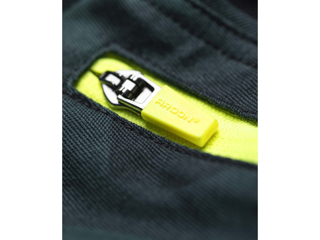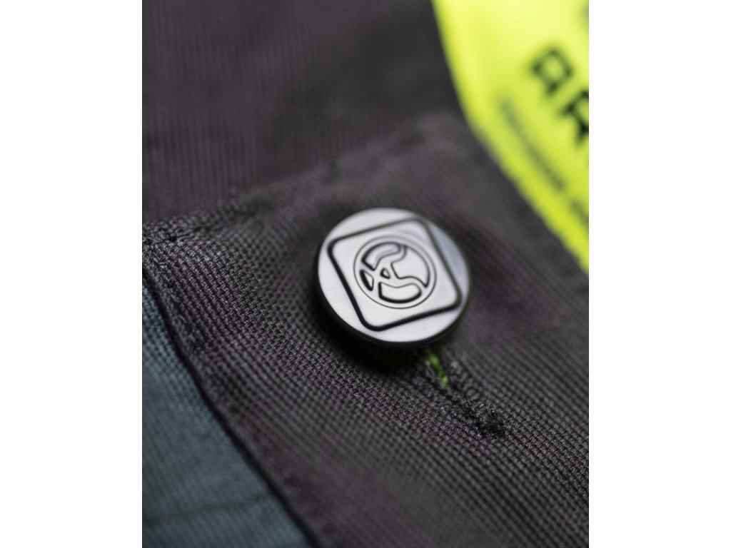 - na pravé nohavici je umístěna multifunkční kapsa na skládací metr, šroubovák a odlamovací nůž se širokými poutky, na levé nohavici je velká dvojitá kapsa krytá patkou na druk, trojité prošití v namáhaných partiích