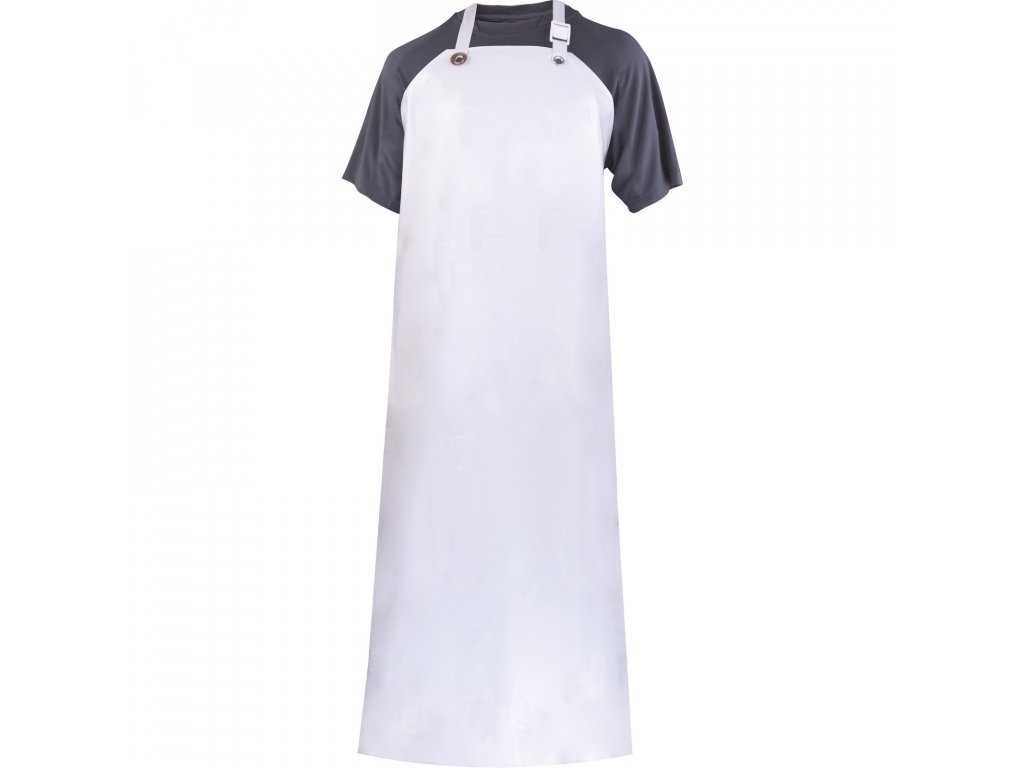 Zástěra. Nastavitelná přezka na krku. Rozměry: 115 cm x 90 cm. Tloušťka: 0.35 mm. Nitrile/Vinyl.Doplňkové parametry