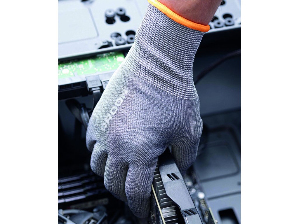 - protiřezné ESD rukavice s konečky prstů máčenými v polyuretanu