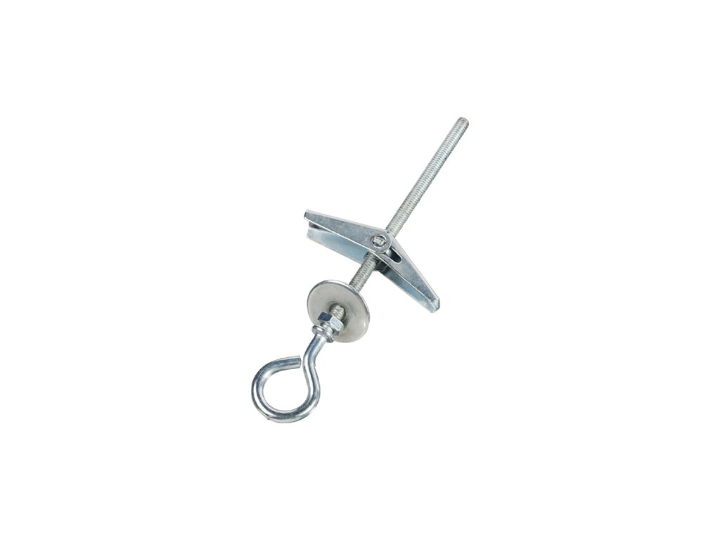 Kotva rozkládací s uzavřeným hákem. Dvouramenná, pružinová, rozkládací příchytka s okem pro snadné zavěšení drobných dekoračních prvků (květináče, látkové boxové šatníky aj.) Rovněž lze použít do stěn k zavěšení drátěného programu v kuchyních, koupelnách, dílnách apod.
