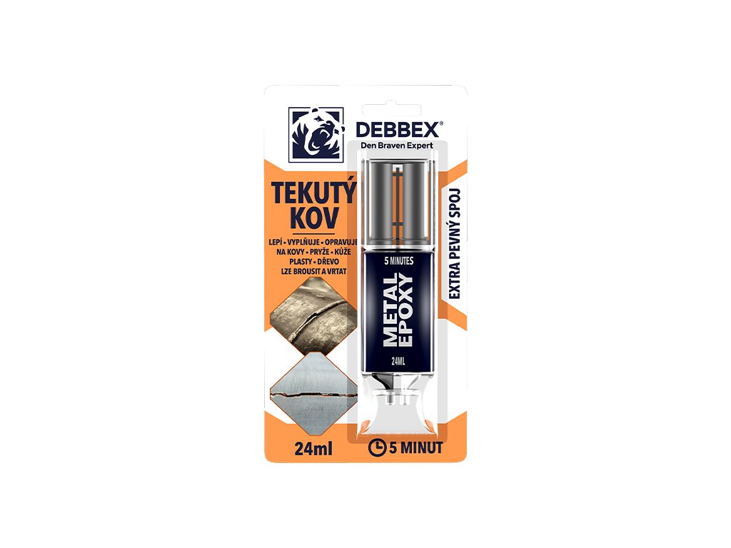 Tekutý kov je rychletuhnoucí dvousložkové epoxidové lepidlo především na kovové materiály, ale také na pryže, kůže, plasty nebo dřevo. Po vytvrzení vytváří pevný spoj tmavě šedé barvy. Lze jej pilovat, brousit a vrtat. Vyznačuje se nízkým zápachem, silným lepením a snadným použitím. Je odolný vůči vodě, olejům, kyselinám a zásadám.