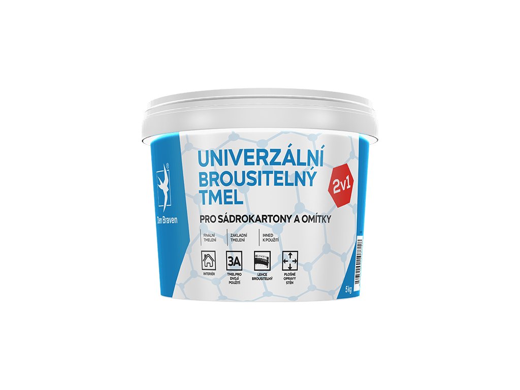 Jde o vysoce jakostní tmel pastového provedení určený k tmelení spár sádrokartonových desek pro bandážování a finální vrstvy, pro použití se skelnou bandáží nebo samolepicí mřížkou. Je vhodný také k celoplošnému vyrovnávání nerovných omítkových podkladů před finální povrchovou vrstvou. Tmel je lehce brousitelný. Má prodlouženou dobou tuhnutí. Označení dle EN 13963 – 3A – Tmel pro dvojí použití. Brousitelný tmel je vhodný také na opravy omítek, zdiva a betonu, včetně pórobetonových tvárnic jako YTONG, HEBEL, spár sádrokartonových konstrukcí apod. Tmel pro bandážování i finální vrstvy.