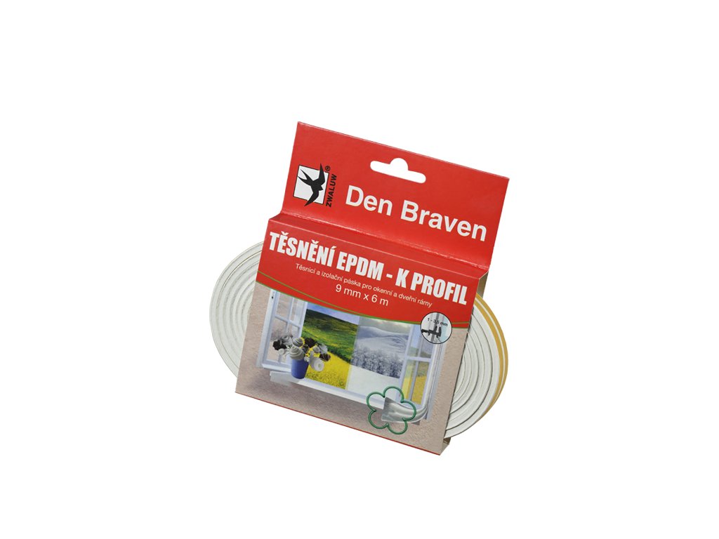 Pro efektivní těsnění spár mezi rámy oken a dveří. Samolepicí těsnicí profily z kvalitní EPDM pryže jsou navrženy v rozdílných K, P a D profilech tak, aby pokrývaly širokou potřebu těsnění různých spár. EPDM pryž absolutně odolává vlivům větru, UV záření a nepřízni počasí, nepraská ani nepuchří a zůstává elastická i po mnoha letech. Profil skvěle vyplňuje mezery, má strukturu uzavřených pórů a tudíž neabsorbuje vodu. Tepelná odolnost pásky -40 °C až +60 °C. Aplikovat pásku je možné v rozsahu +5 °C až +25 °C.