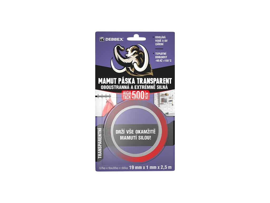 Oboustranná a extrémně silná MAMUT PÁSKA TRANSPARENT 19 mm × 1 mm, délka 2,5 m 2,5 m transparentní