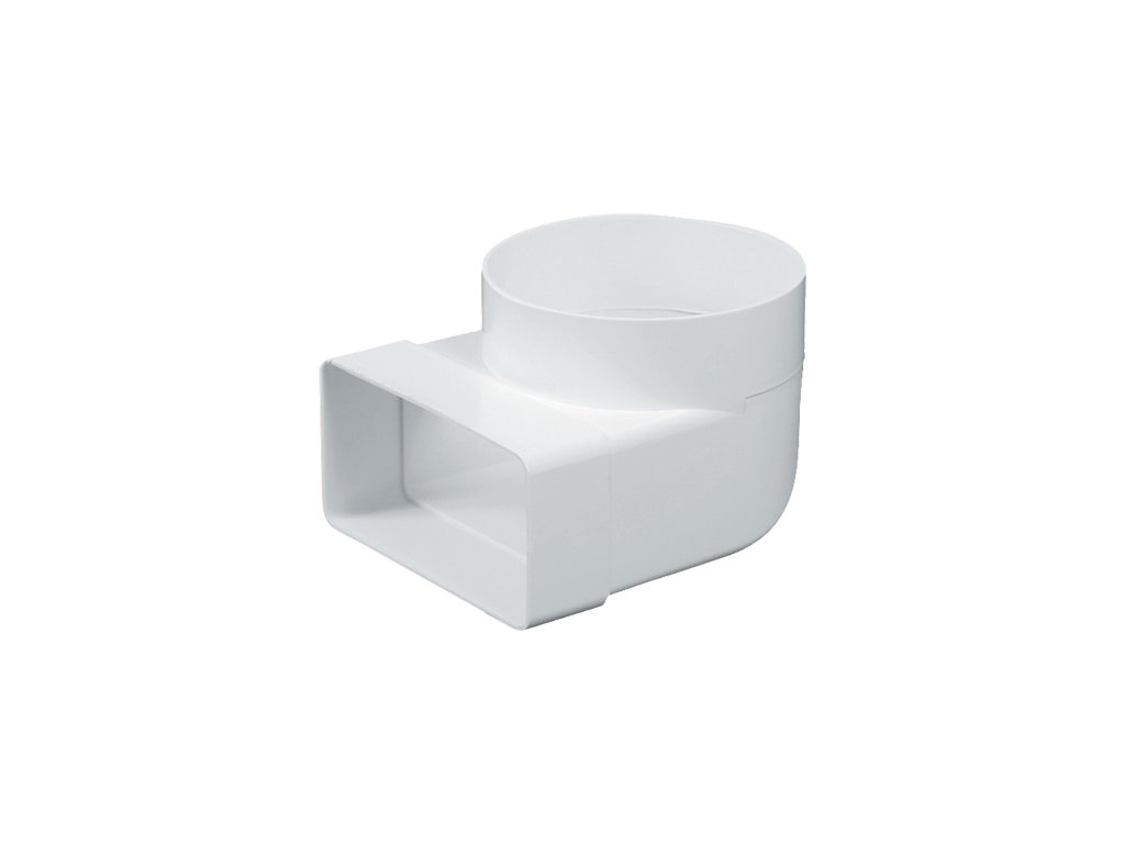 Slouží k přechodu z plochého ventilačního vedení na kulaté při přechodu z vertikálního vedení na horizontální.