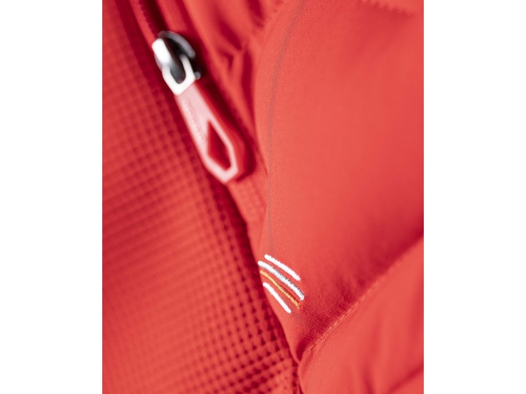 - vesta je vybavena průběžným zipem s krytkou brady, bočními zipovými kapsami, celkový design dotváří prošívaná kapuce