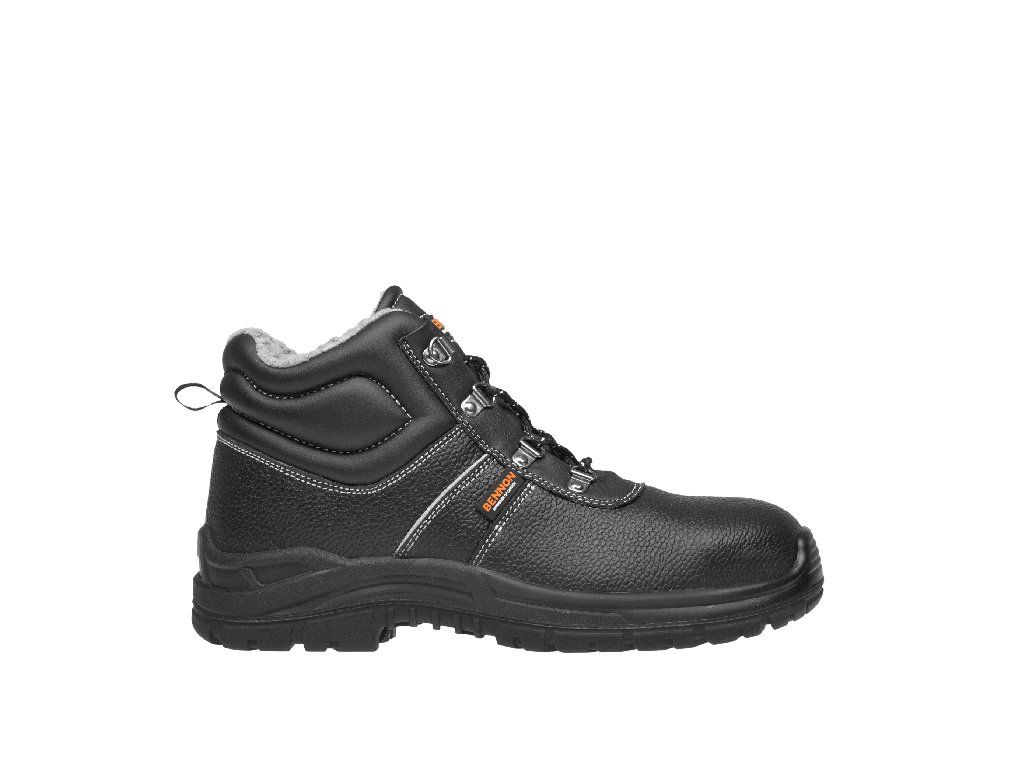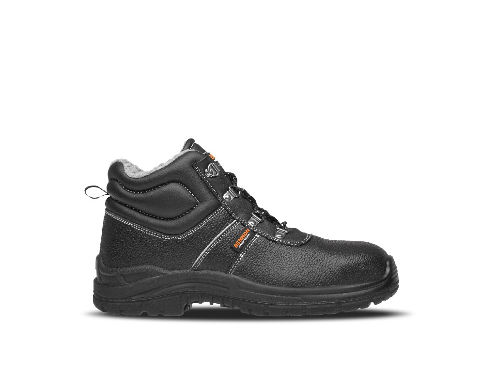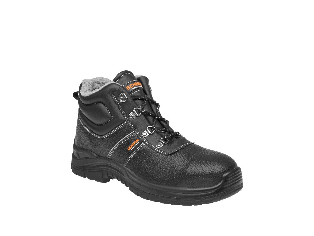 BENNON BASIC Winter High O2 kotník zimní černá. Lehká a flexibilní obuv pro použití ve venkovních prostorech. Svršek z hovězinové usně. Podšívka z šedé plyše. Velikosti: 36 - 50, Norma: EN ISO 20347 O2 CIDoplňkové parametry